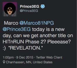Dans un autre tweet, Prince mentionne également la présence de la version studio de « Black Muse ». Ce titre était chanté lors de la tournée Welcome 2 America en 2010 par Liv/Shelby et Elisa.